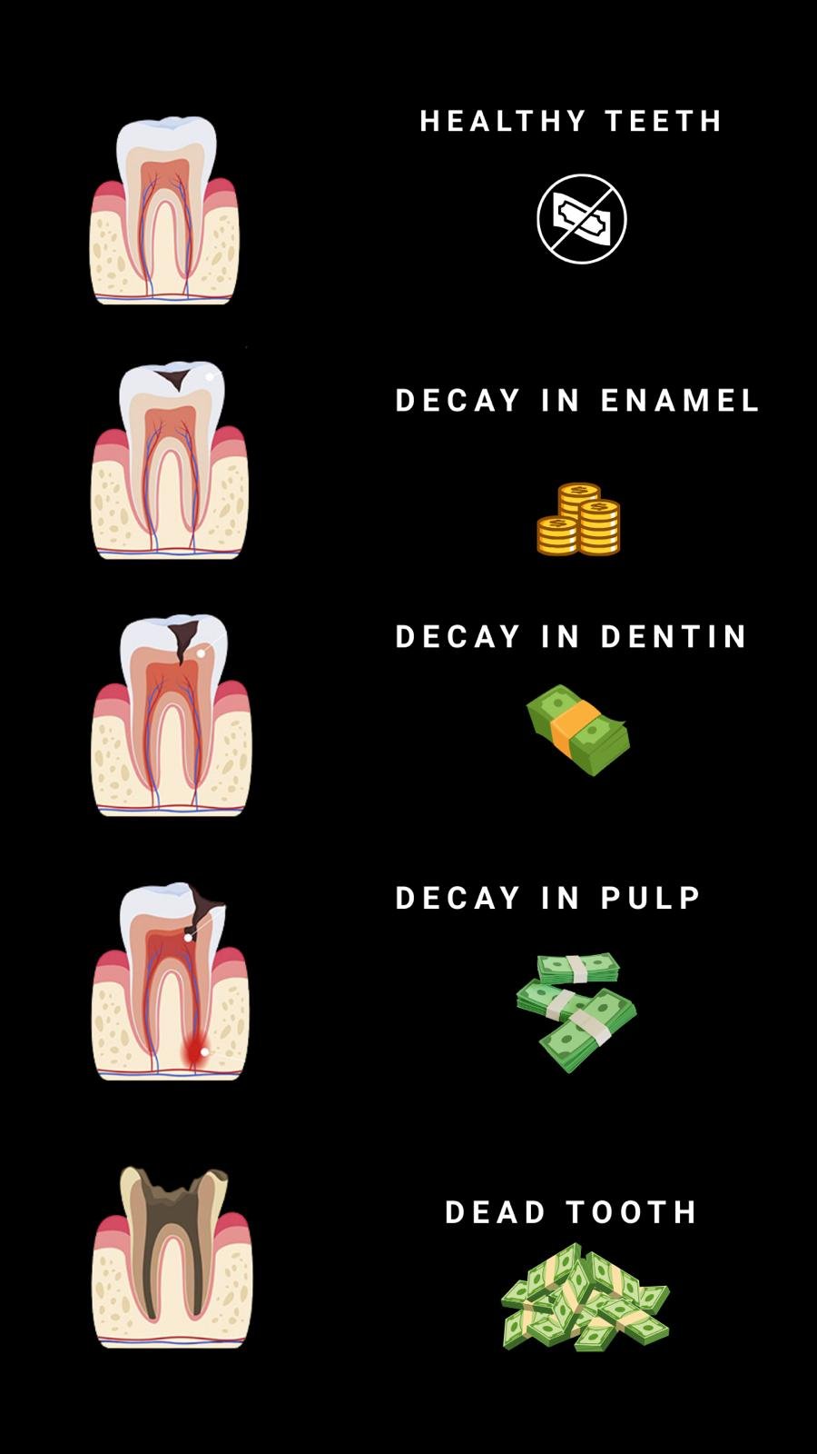 But when ignored, a small cavity can turn into a root canal. A root canal can become an extraction. And replacing a lost tooth takes more time, effort — and cost.